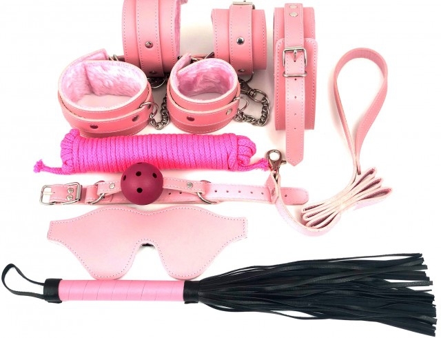 экокожа, наручники, наножники, ошейник и поводок, веревка, кляп, маска, плеть