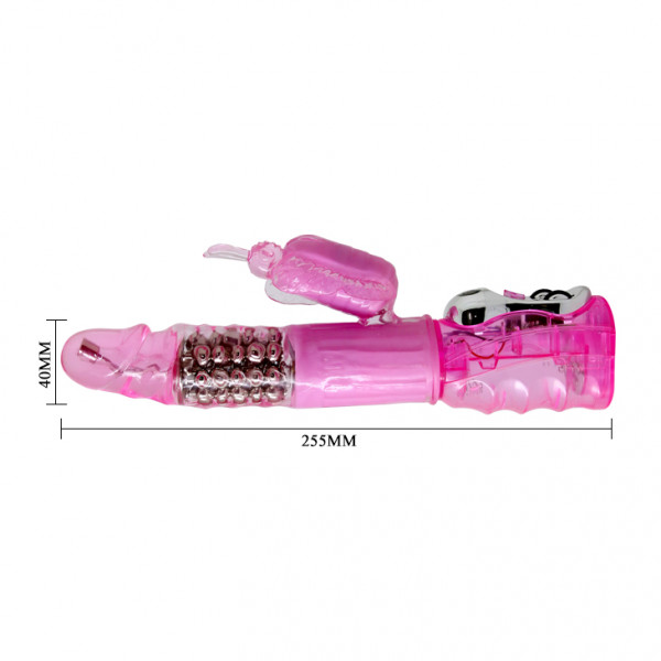 Вибратор-ротатор "Deluxe" классический хай-тек в нежно розовом цвете. Ярко выраженная головка, складки, имитирующие крайнюю плоть, блок металлических шаров и клиторальный зайка обещают неземные ласки клитора и лона одновременно!
